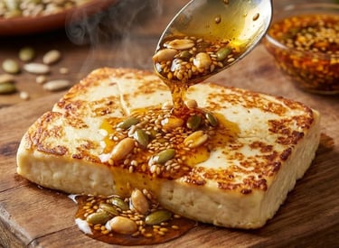 ¿Tienes una reunión y no sabes qué dar? Asa un queso panela en el comal y bálalo por completo con nuestra Salsa Gourmet de Semillas. El calor del queso activa el aroma del aceite y las pepitas le dan ese "crunch" que vuelve locos a todos.