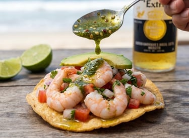 El remedio infalible para el domingo. Un ceviche fresco de camarón o pescado, montado en nuestras Tostadas Inquebrantables y coronado con gotas de Habanero Perla Tapatía. Pica rico, despierta los sentidos y cura cualquier mal.